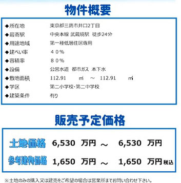 4.東京都三鷹市井口 建築条件付売地(全1区画)